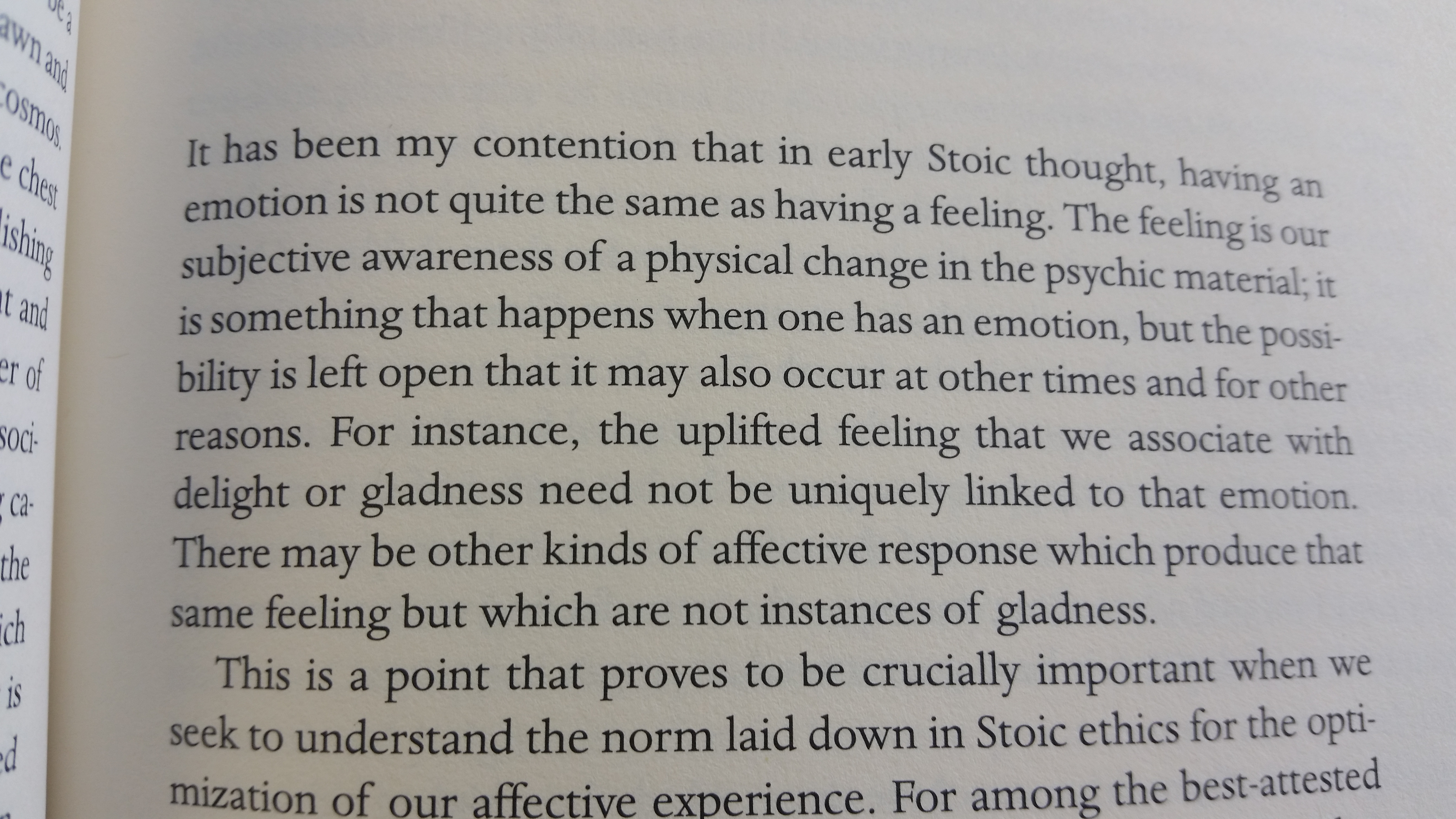 Your discussion today about the physiological responses to external stimuli as different from the passions fits well in with what Graver says above.