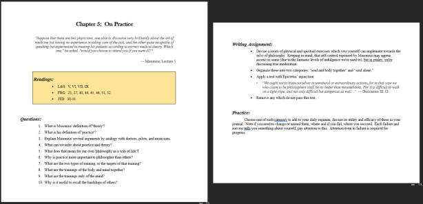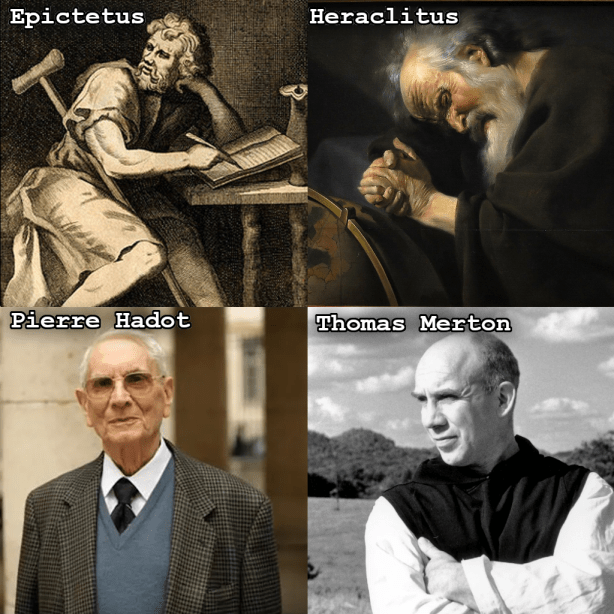 From the words above, we can look at some English words which help us see what Socrates is doing inside, he’s turning his thoughts inward, examining himself, contemplating, inspecting, looking out for something, etc. His practice involves him standing, sometime shortly, other times for a very long time, and engaging in this work. He stands away, so it’s personal, but he does it wherever he happens to be, so it’s not private, and it is without concern for time or the events of others, so it is not a public display. I hope this delimits the practice somewhat. Additional, this